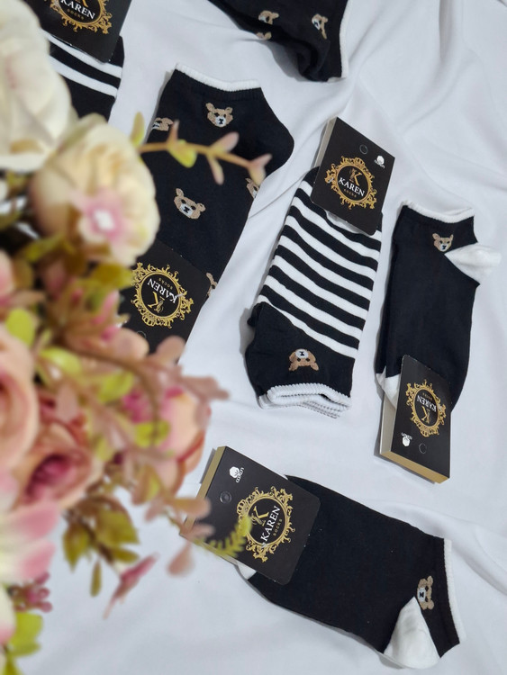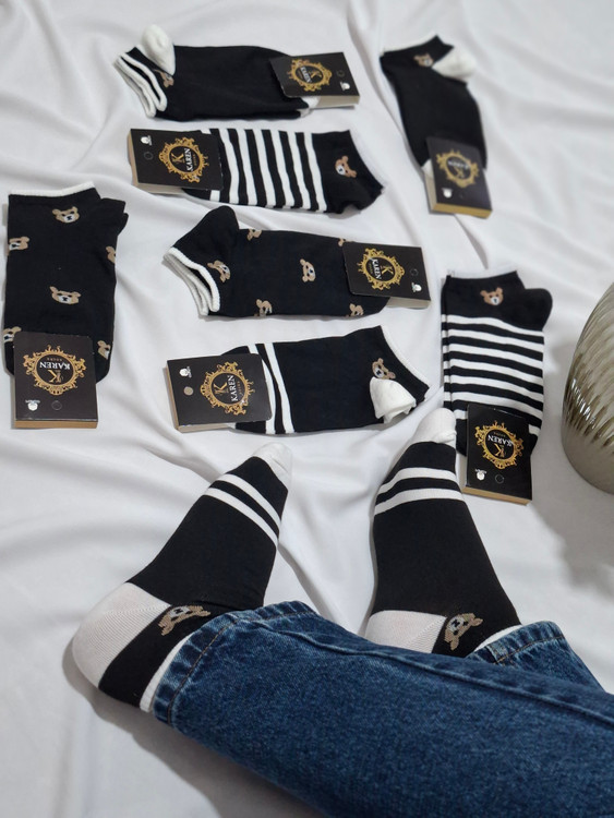 جوراب مچی زنانه طرح تدی سفید و مشکی بافته شده با نخ درجه یک ایرانی و سیلندر ۲۰۰ (بالاترین تراکم موجود)
