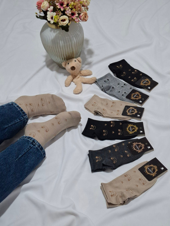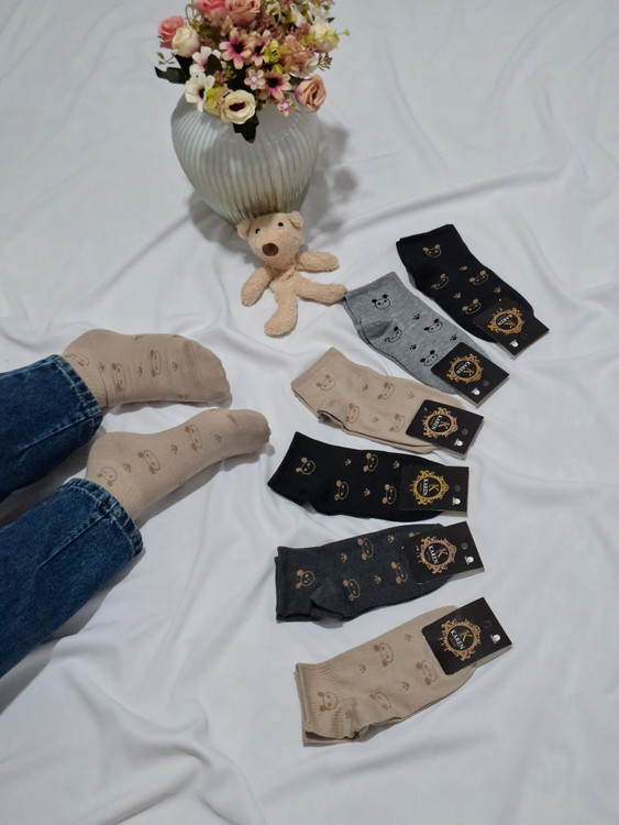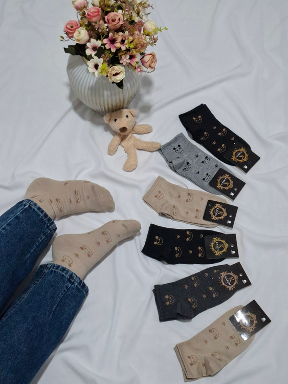 جوراب زنانه مچی طرح تدی ریز نخ ایرانی عمده 12جفتی کد:115