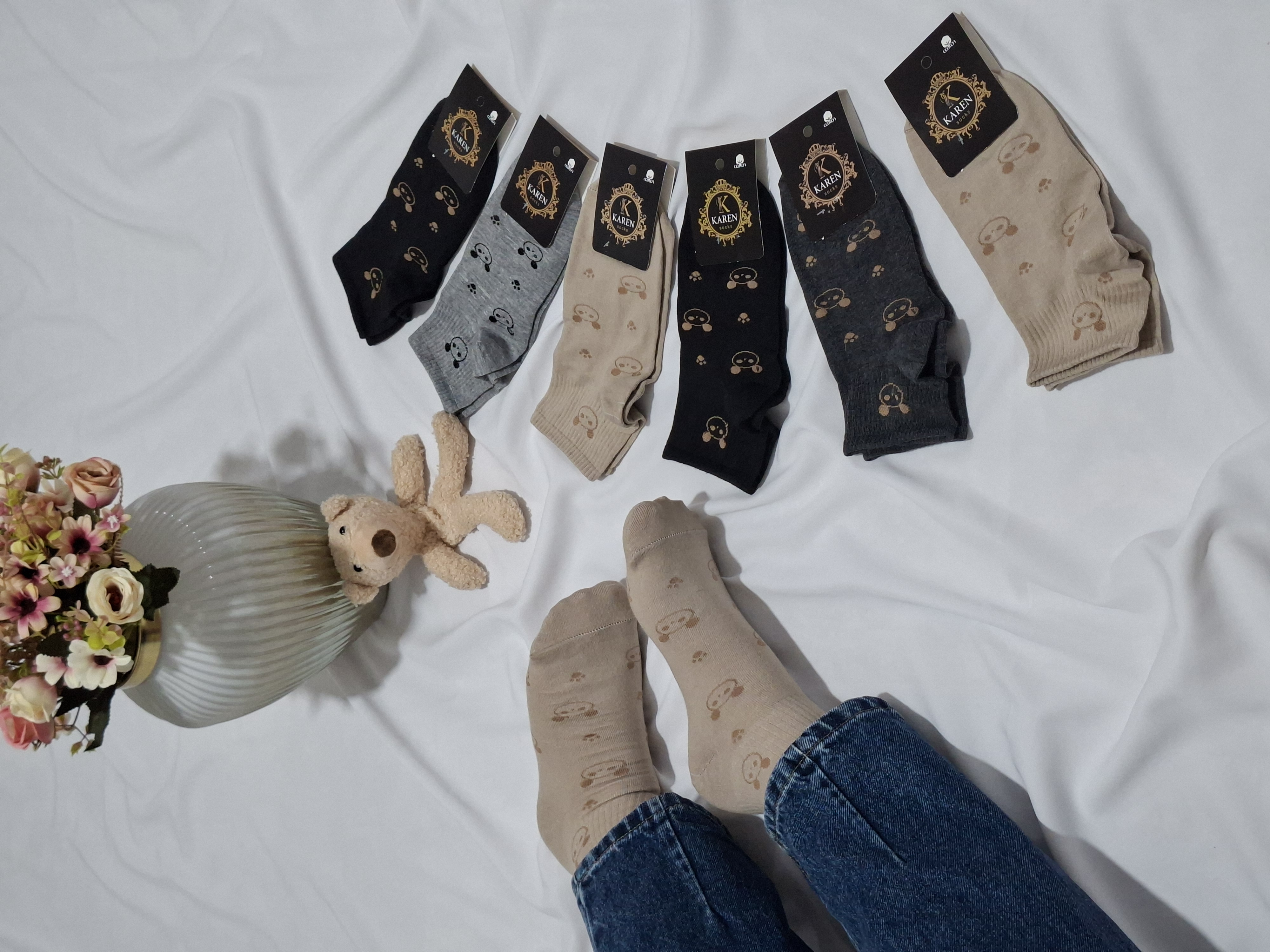 جوراب زنانه مچی طرح تدی ریز نخ ایرانی عمده 12جفتی کد:115